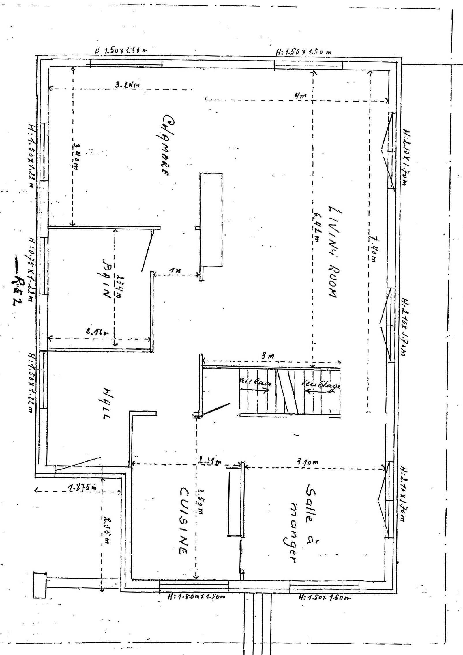 - au rez un hall d'entrée de 5,5 m2, un living-séjour de 40 m2, une cuisine de 19m2, une salle de bain buanderie (5,5m2).